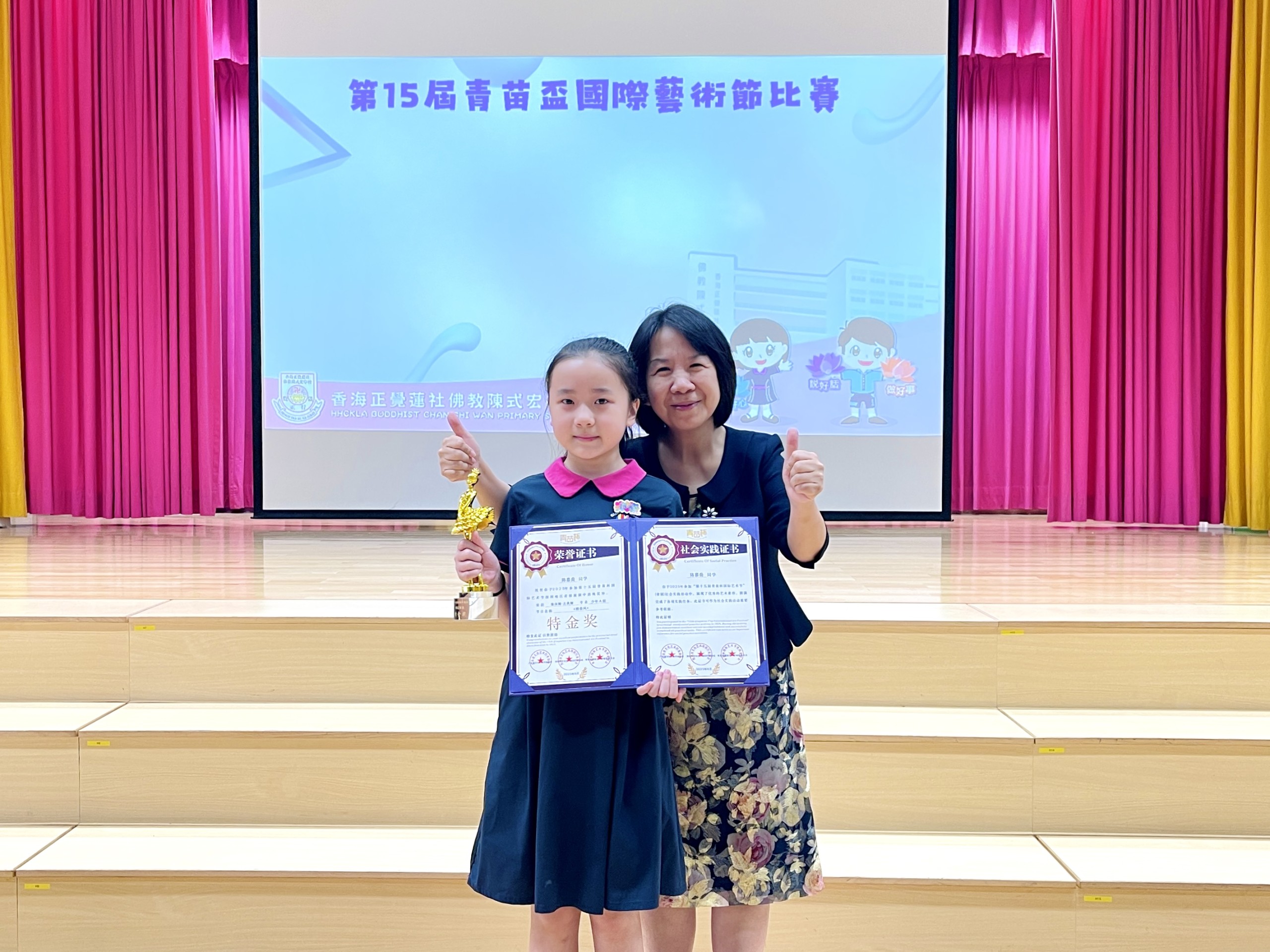 祝賀6C班陳慕喬同學在「第15屆青苗盃國際藝術節」中,於少年A組脫穎而出,榮獲最高殊榮的特金獎!你的藝術才華與創造力獲得了肯定,實在令人欣喜。願你繼續揮灑出更多佳績,在藝術道路上發光發熱!