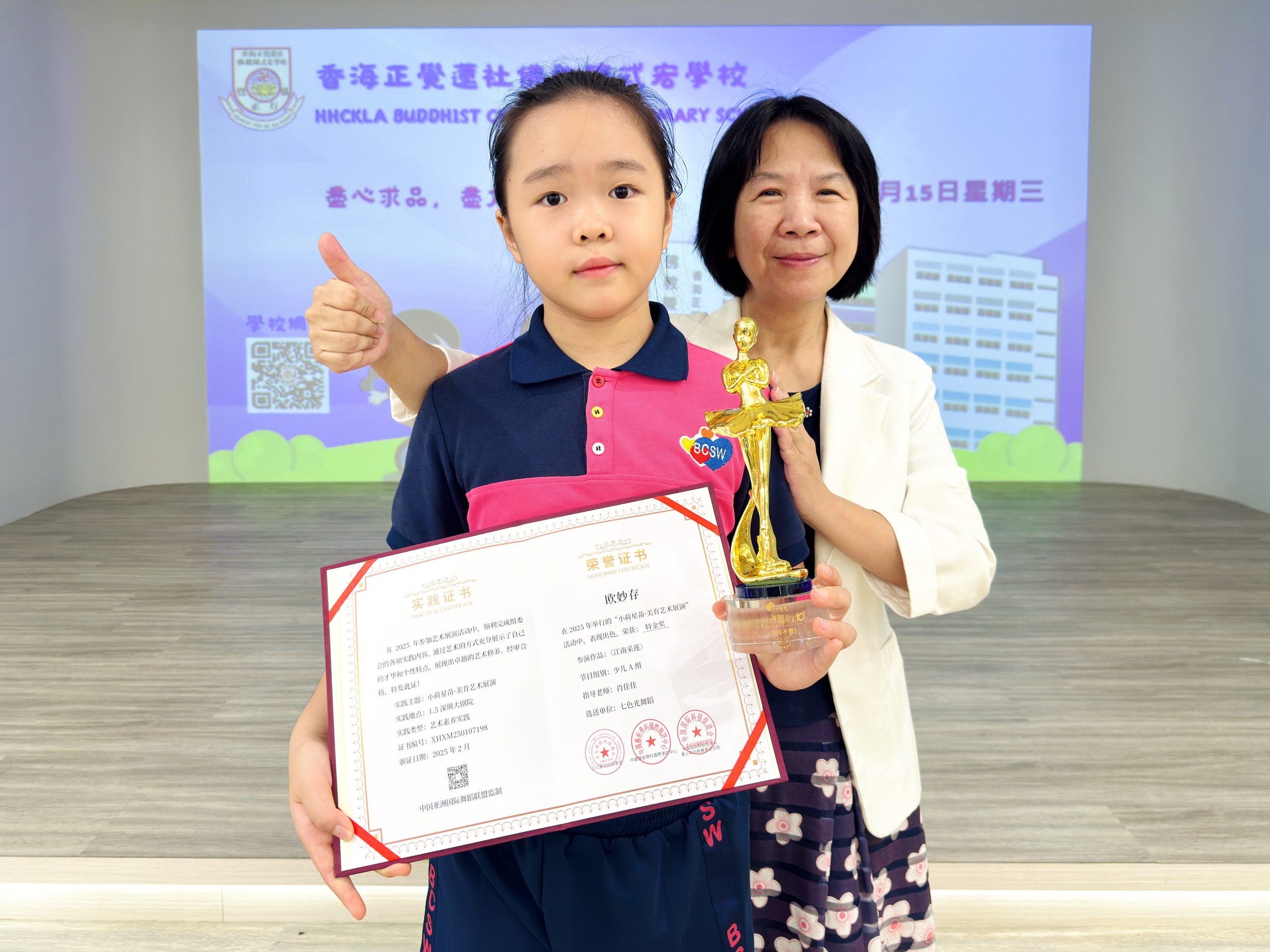 祝賀4E班歐妙存同學在「小荷星苗美育藝術展演」少兒 A 組(舞蹈)中勇奪特金獎。