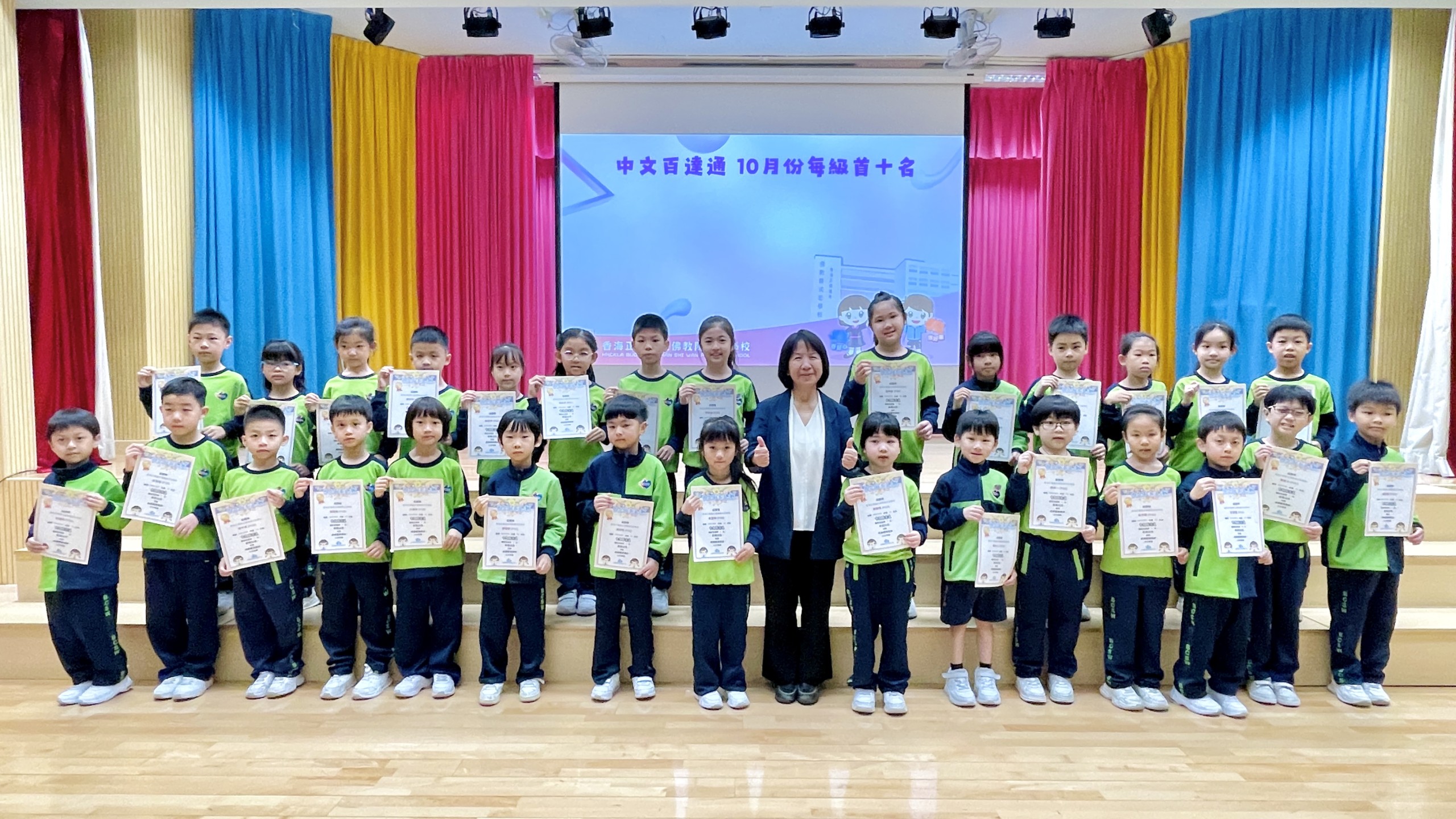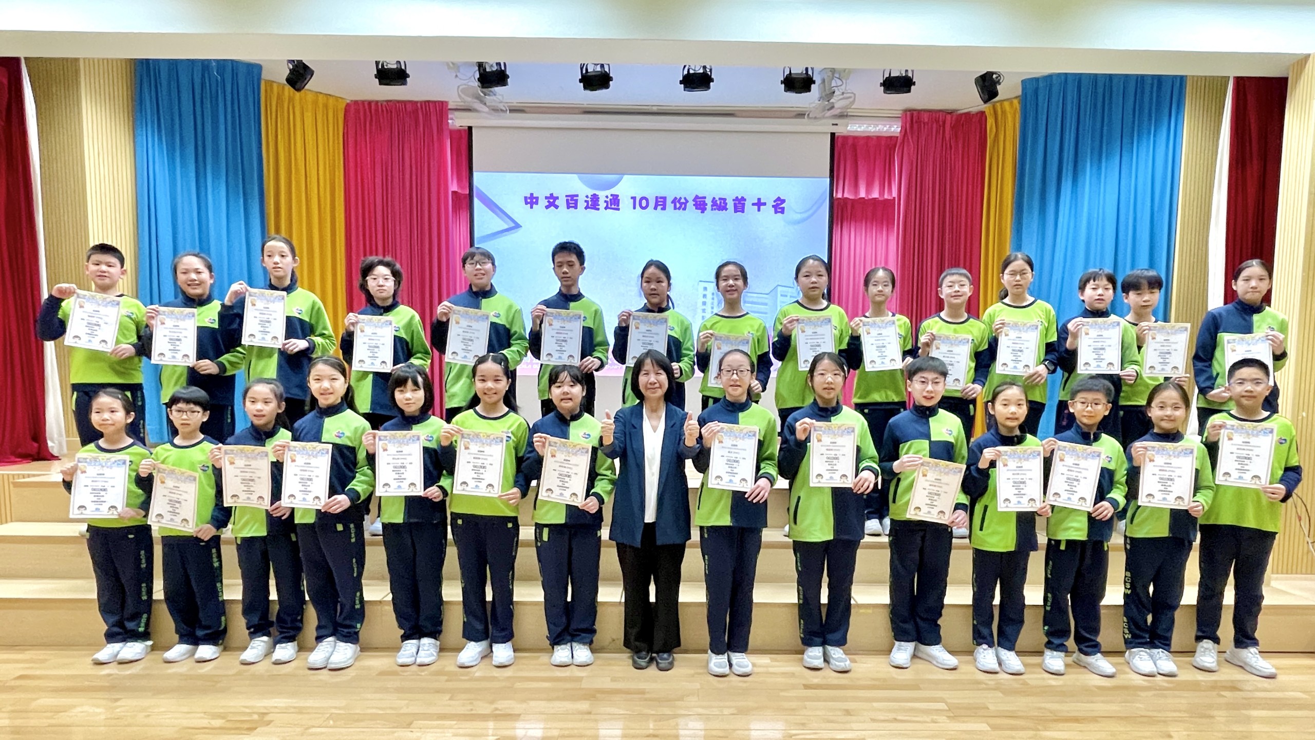 恭喜各位在10月份取得「中文百達通」全級十強證書的同學,欣賞你們的努力和自主學習的態度,祝福大家在評估一能再接再厲,成績更上一層樓!加油!進步可期!